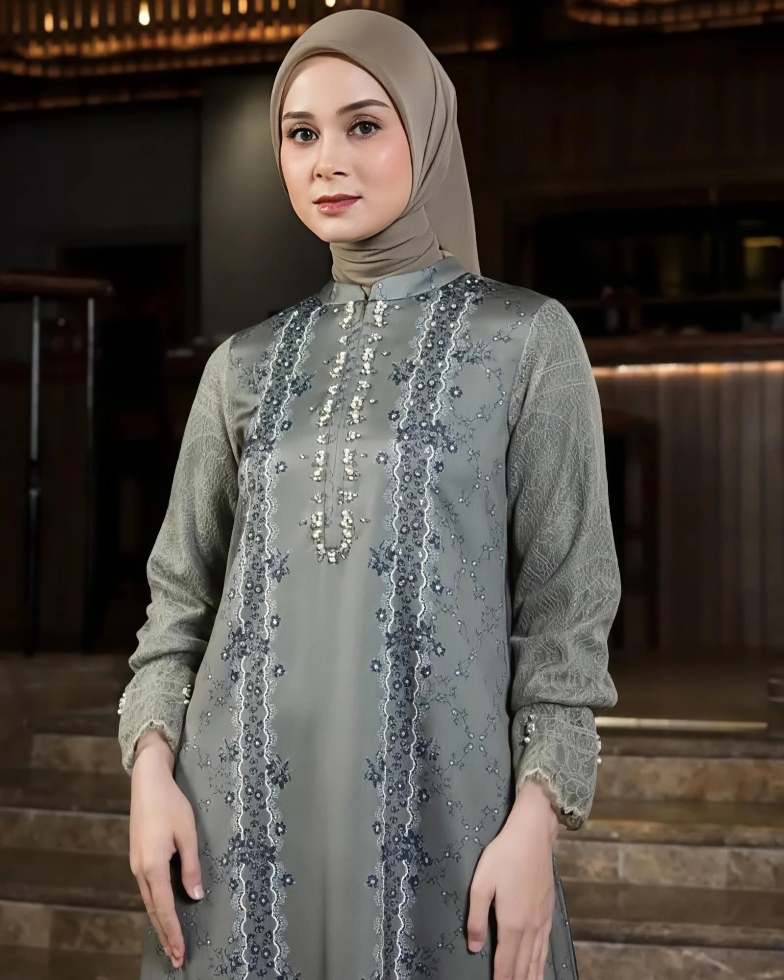 Detail Haivaa FamSet tampil mewah dan elegan, perpaduan cantik dari exclusive print by Kaleela dengan payet manis di bagian dada & manset. Dilengkapi layer santili dan layer tule pada lengan untuk dress dewasa, bikin look Lebaran kamu makin anggun dan classy ✨